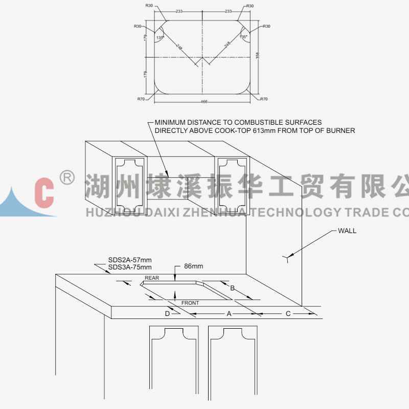 额定热负荷:6.70MJ / HR 气流压力:2.75KPa 尺寸(长*宽*高):478mm * 369mm * 87mm 孔径(长*宽*倒角):466mm * 358mm * R70 质地:不锈钢,钢化玻璃 燃烧器炉子号:两种 点火方式:电子脉冲式 进气方式:上风